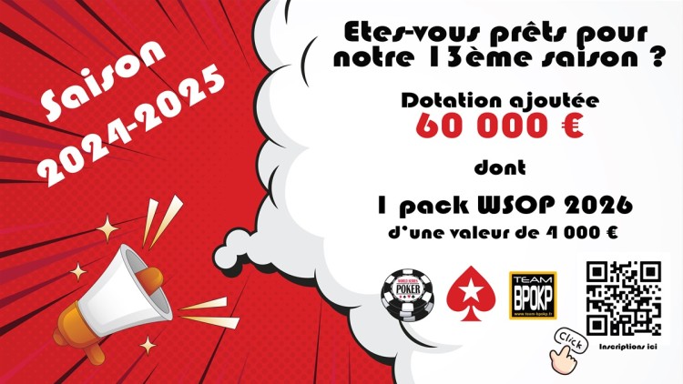 "CHALLENGE TRIO 2025" by Team BPOKP sur PokerStars Une compétition Freeroll par équipes composées de 3 adhérents sur la saison 2024-2025. Je veux participer : je rejoins la TEAM BPOKP, en cliquant... » Lire la suite