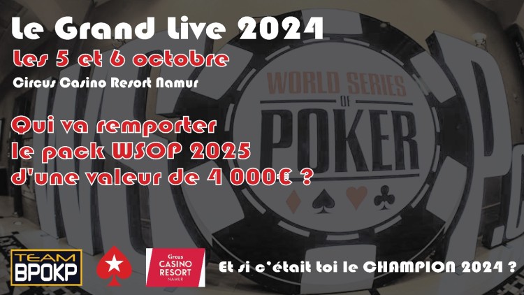 Grand Final Team Bpokp - les inscriptions sont lancées Les 16, 17 et 18 octobre 2026, la Team Bpokp vous donne rendez-vous au Circus Casino Resort Namur, en Belgique, pour son Grand Final. Un week-end de poker, de partage et de convivialité. Attention : l’entrée au... » Lire la suite
