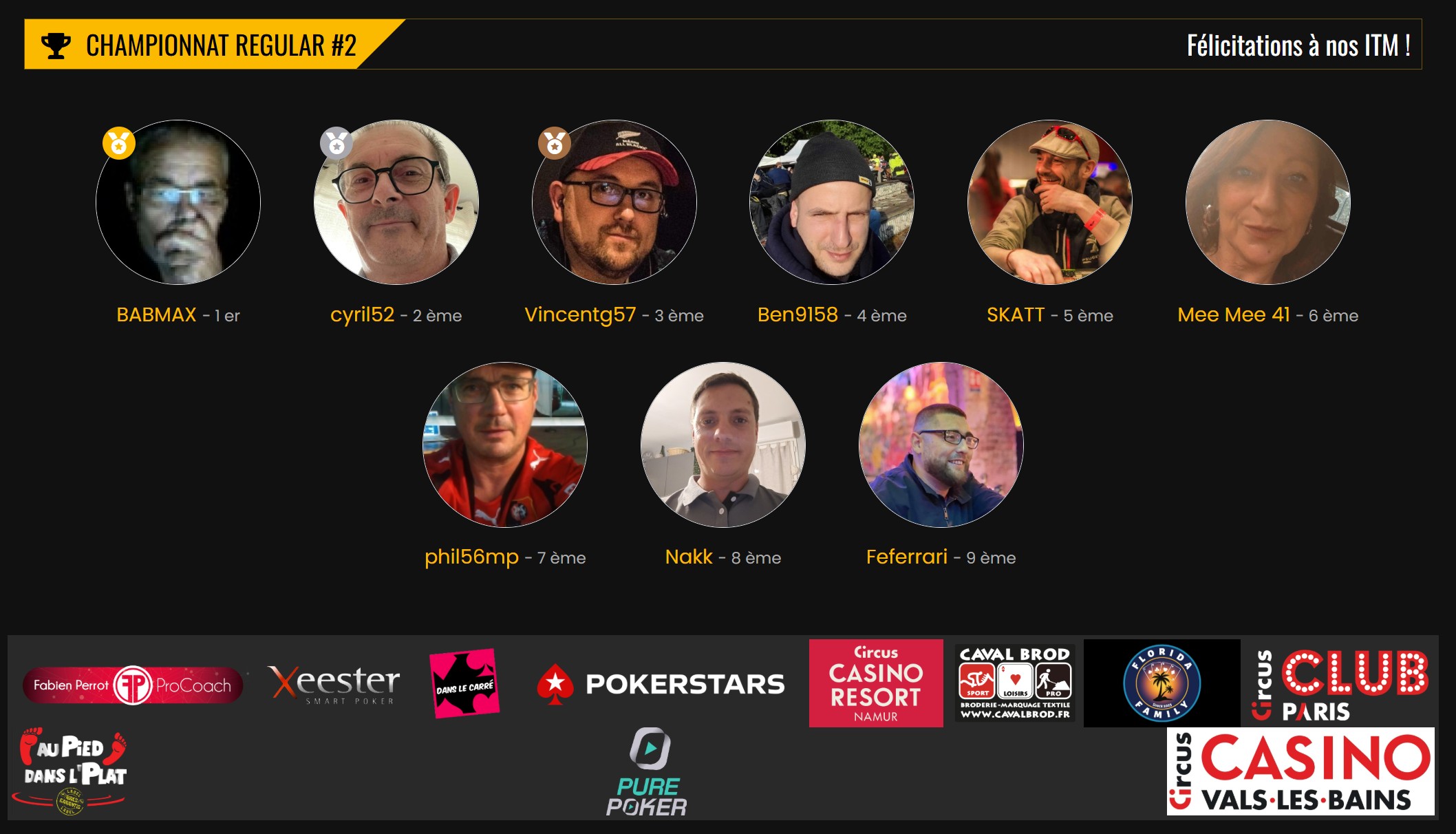 Le Regular est un championnat mensuel organisé par Team Bpokp sur PokerStars. Il se déroule de septembre à décembre 2025 avec un buy-in unique de 2 €. Chaque mois, une dotation spécifique est mise en jeu, offrant aux membres un challenge régulier et accessible.