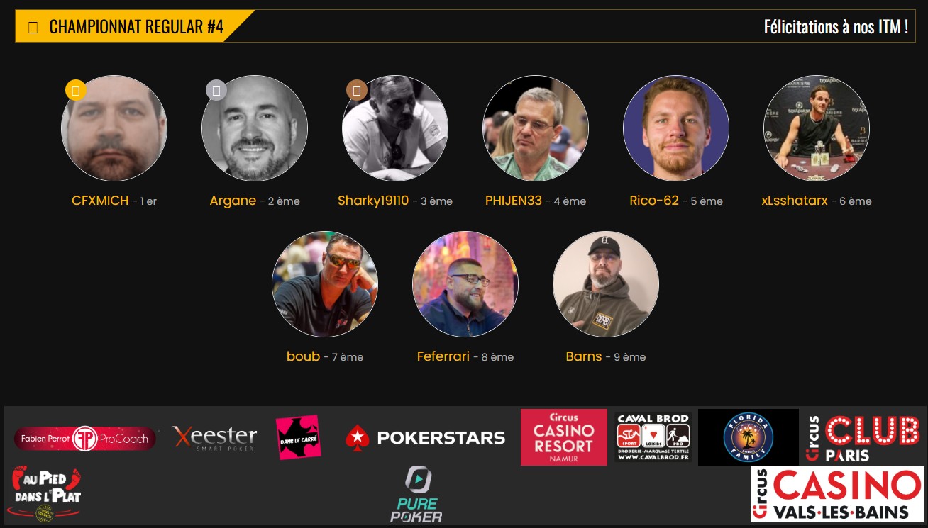 Le Regular est un championnat mensuel organisé par Team Bpokp sur PokerStars. Il se déroule de septembre à décembre 2025 avec un buy-in unique de 2 €. Chaque mois, une dotation spécifique est mise en jeu, offrant aux membres un challenge régulier et accessible.