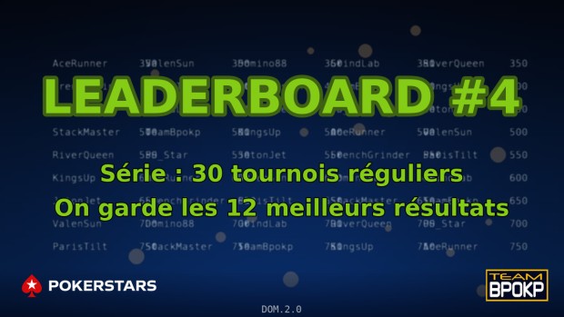 Le Leaderboard est un classement mensuel réservé aux membres Team Bpokp, basé sur les tournois réguliers joués tout au long du mois sur PokerStars. Cette édition couvre le mois de décembre 2025.