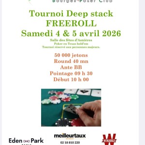 Le Bourges poker club est heureux de vous inviter pour son deuxième deepstack interclubs de la saison, les 04 & 05 avril 2026![]()